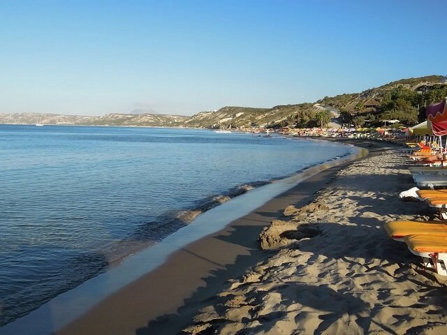 Kardamena liegt ebenfalls an der Südküste. Etwa 70 % der Strände in der Nähe sind wild: Sandstrände wechseln sich mit felsigen Abschnitten ab, im Meer kann es Felsen geben. Ein Teil der Küste wird vom Hafen eingenommen. Urlauber, die Strandkomfort bevorzugen, finden in 1,5 bis 3 km Entfernung die voll ausgestatteten Strände “Atlantis” und “Banana Beach”.