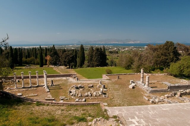 Die Ruinen des Asklepieions wurden 1901 von einer Archäologengruppe unter der Leitung eines deutschen Gelehrten entdeckt. Zu dieser Zeit befand sich die Insel Kos unter türkischer Herrschaft und einige wertvolle Funde wurden nach Konstantinopel gebracht. Um die Überreste der Kirche zu sehen, muss man den Hügel hinaufsteigen. Darüber hinaus bietet sich von hier aus ein atemberaubender Blick auf das Meer.