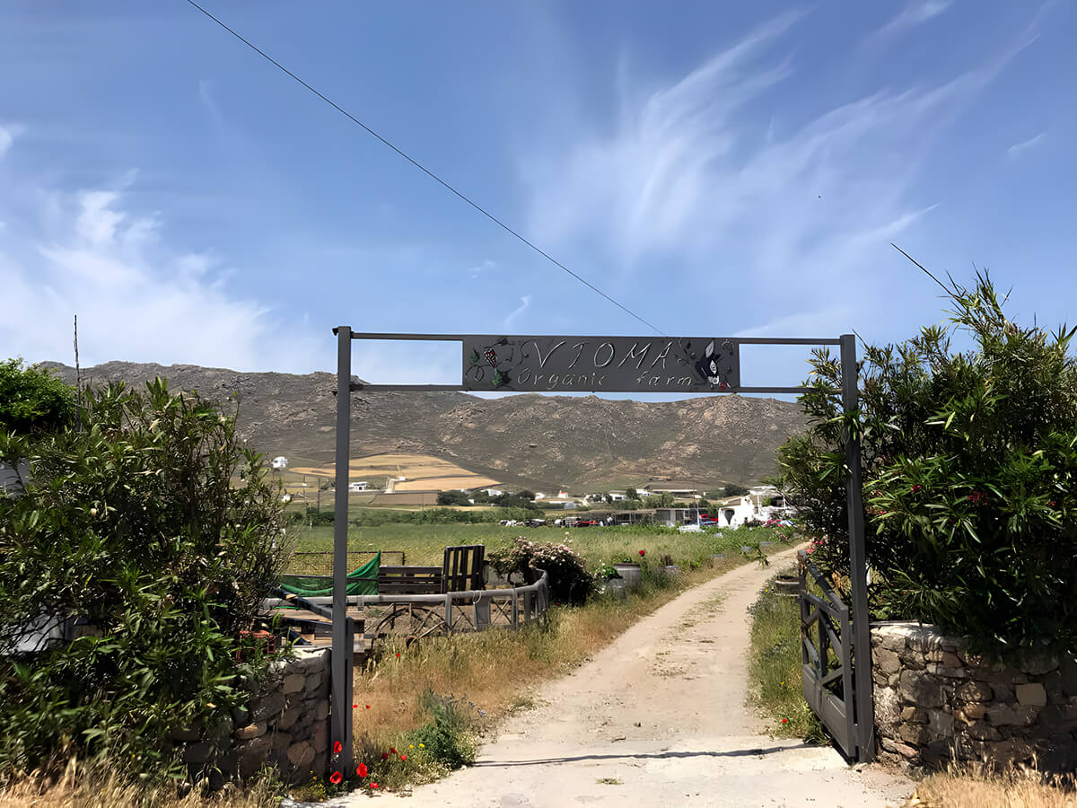 Eingang zum Bio-Bauernhof (Mykonos Vioma Organic Farm)