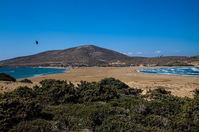 Liebhaber von Strandurlaub und Wassersport können sich nach Prasonisi begeben, dem südlichsten Punkt der Insel, wo die Ägäis und das Mittelmeer aufeinander treffen und ideale Bedingungen für Surfen und Kitesurfen bieten.